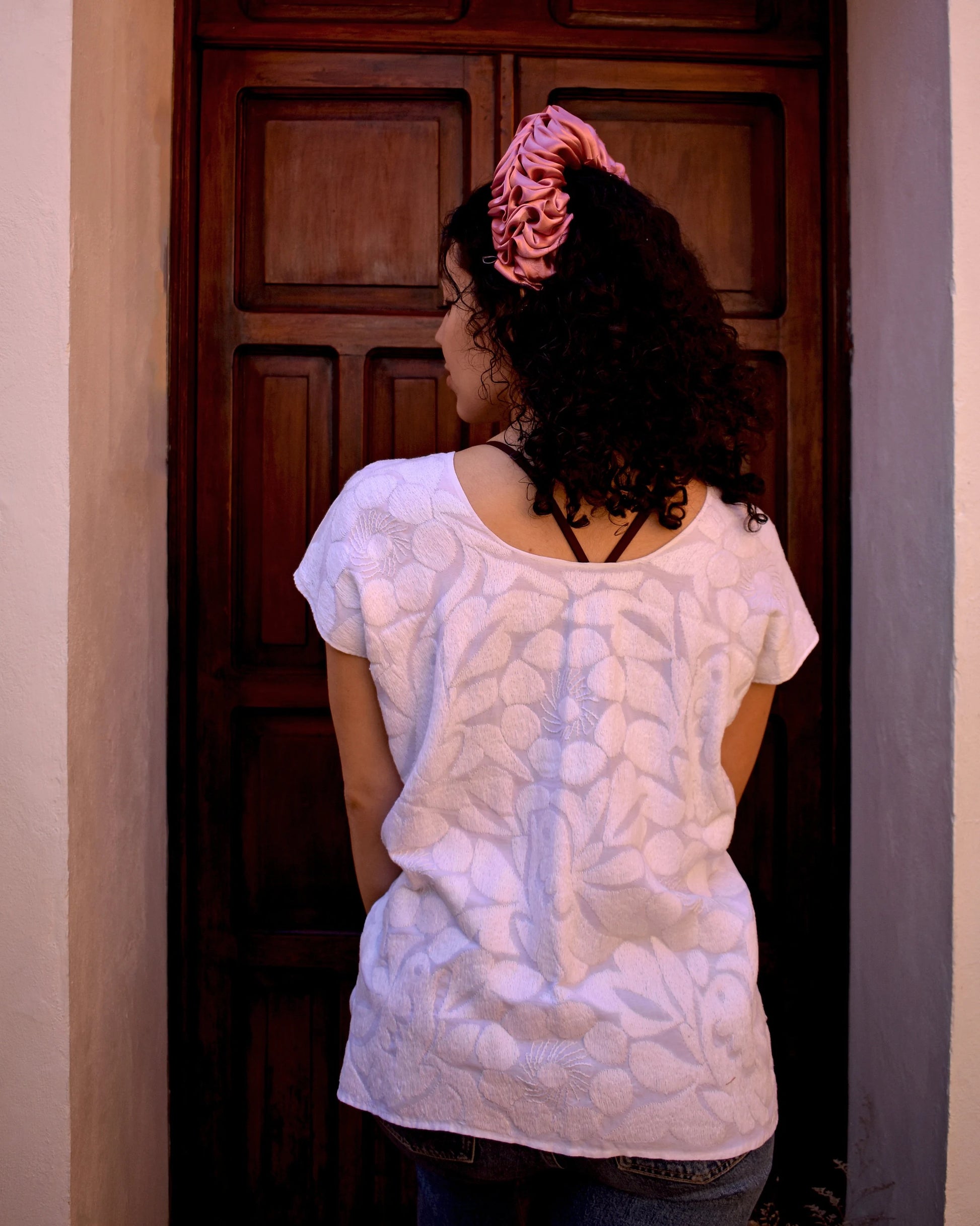 Delicada y atemporal, esta blusa blanca con bordado blanco es una prenda artesanal hecha a mano en la comunidad de Jalapa de Díaz, Oaxaca. Su elegancia radica en la sutileza: aves bordadas en tono blanco sobre fondo blanco, que crean un diseño sobrio pero lleno de intención.