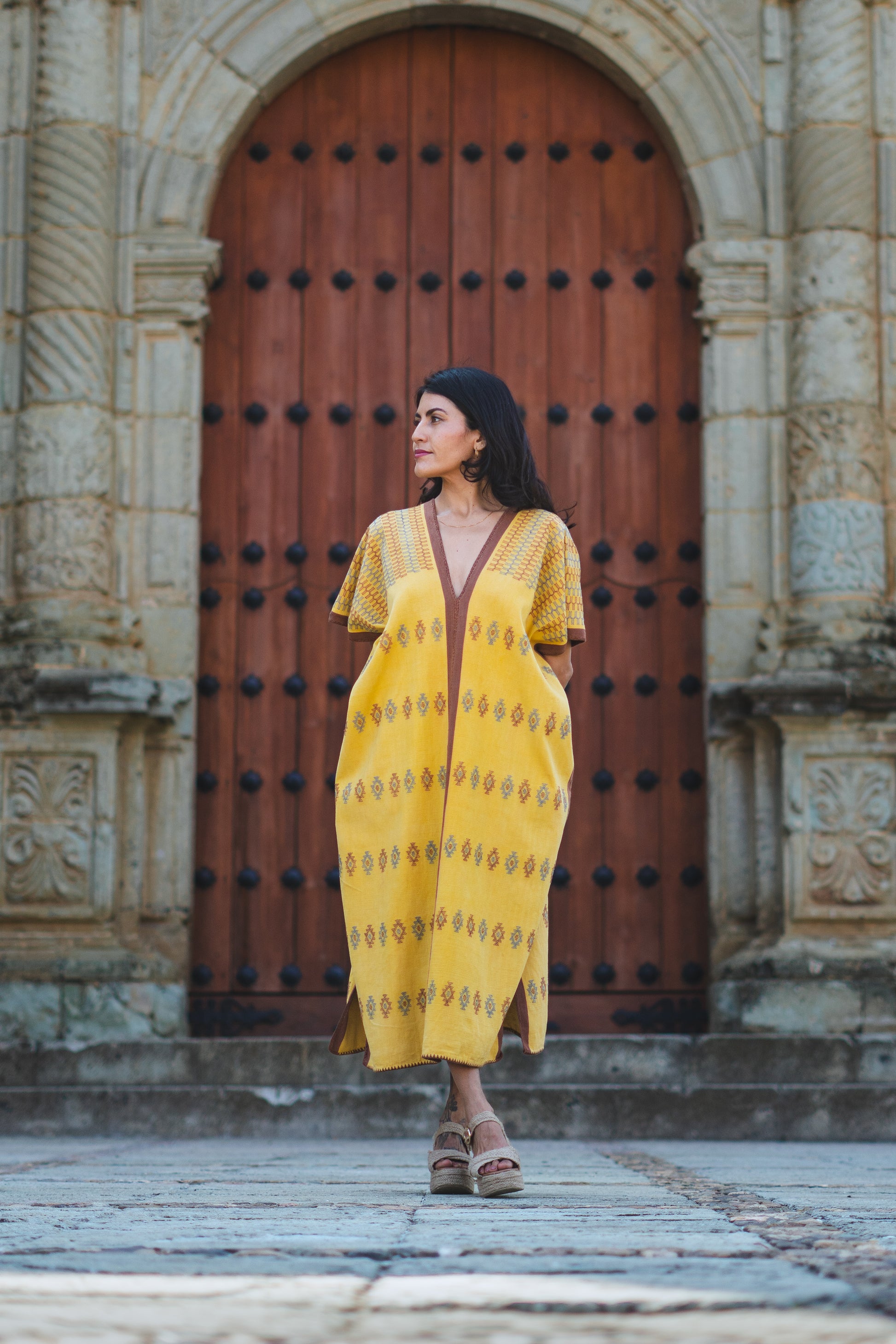 Huipil de Dos Lienzos – Tintes Naturales de Cempasúchil, Corteza e Índigo – Brocado de Rombos – Telar de Cintura – Pieza Única de Oaxaca