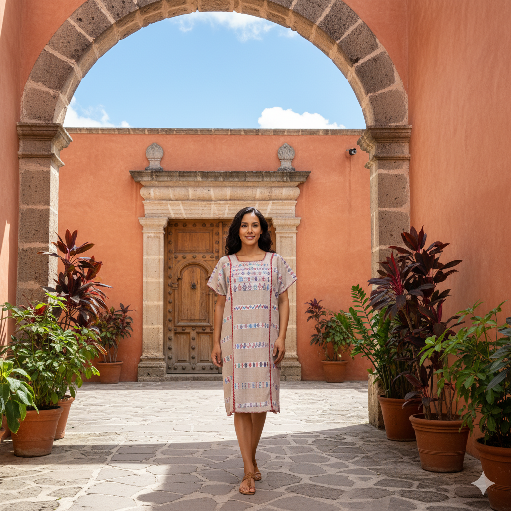 Esta pieza de colección honra las raíces del textil indígena con un huipil único, tejido a mano en telar de cintura con hilo coyuchi combinado con blanco, originario de la comunidad de San Juan Colorado, Oaxaca. El algodón coyuchi, sin teñir y de tono natural, ofrece una textura suave y una conexión directa con la tierra y los saberes ancestrales.