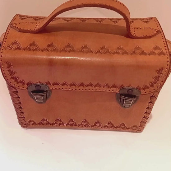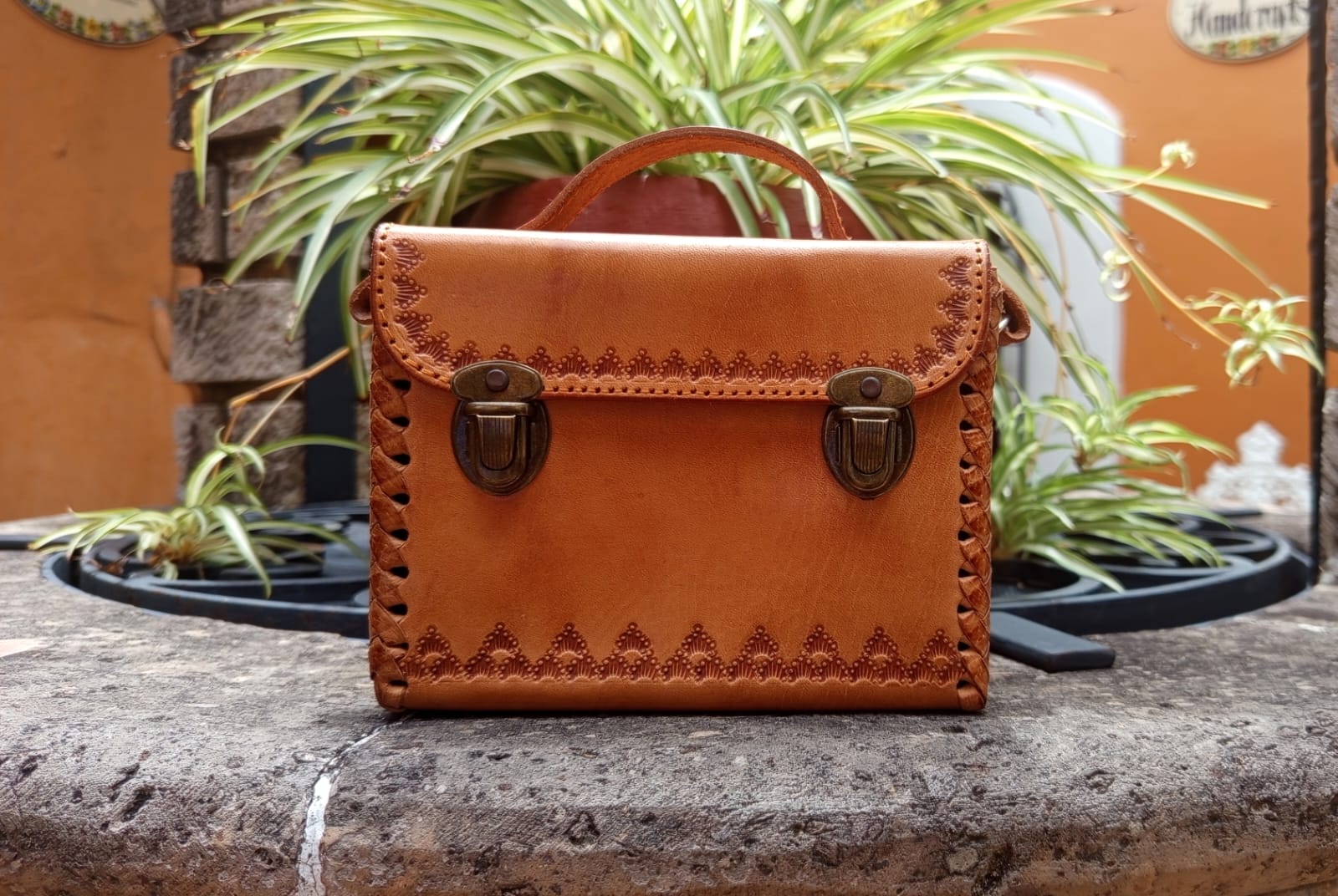 Descubre la elegancia auténtica de la Mini Crossbody de cuero color miel, una pieza única hecha en Oaxaca por maestros talabarteros con más de 80 años de experiencia. Cada bolsa es elaborada artesanalmente, utilizando prensas antiguas para realizar los cortes con precisión y ensamblada completamente a mano, reflejando la tradición y el arte de la talabartería mexicana.