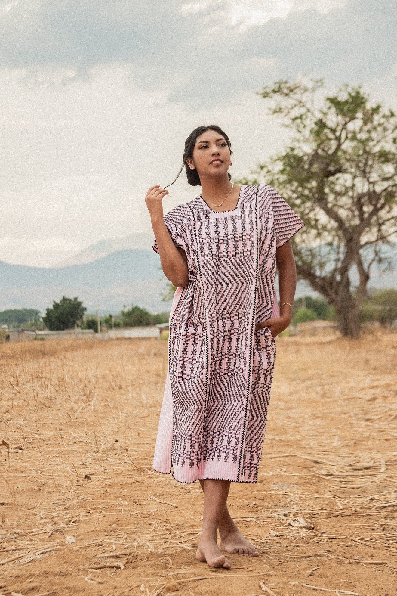 Celebra la belleza de la tradición y la creatividad con este huipil largo 3 paneles rosa, tejido a mano con 100% algodón mercerizado para una sensación suave y lujosa. Esta pieza especial presenta un encantador brocado , huipil unico en brocado y en diseño.