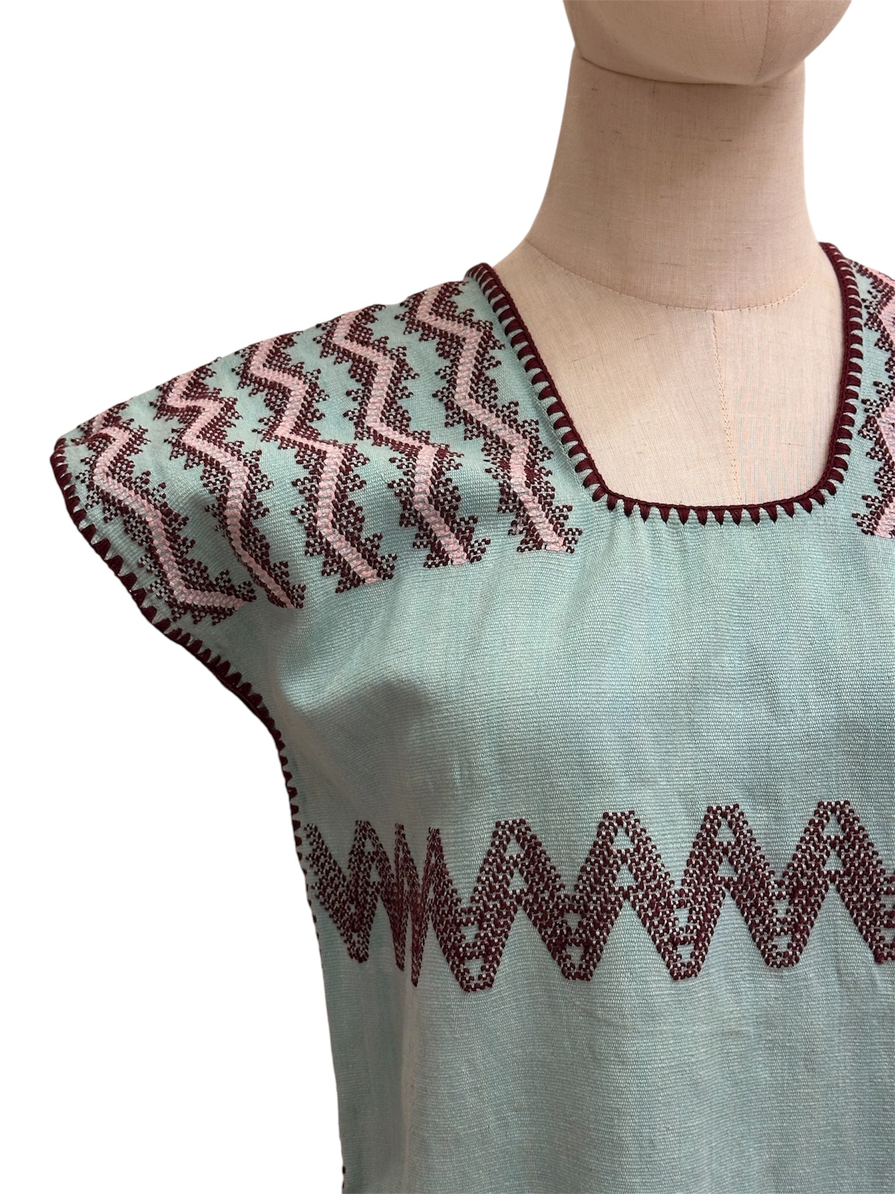 Huipil verde menta corto con brocado zigzag – Telar de cintura Oaxaca